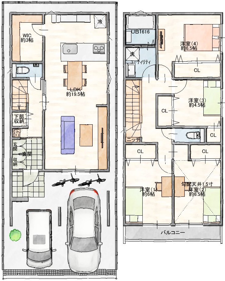 ・4LDK+SS×駐車場2台!大型収納やスムーズな家事動線など細部にこだわった設計です。